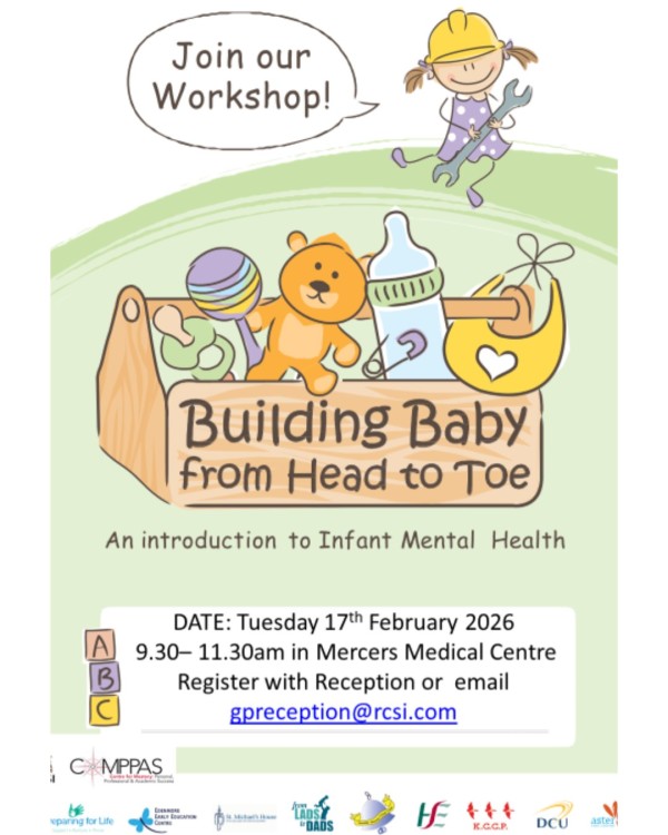 What: this is an introductory workshop for parents and caregivers on the topic of Infant Mental Health. Designed by Preparing for Life, in collaboration with local health, education, and social care professionals, our colleague, senior Social Worker Michelle Burnett contributed to the content creation of this workshop. Michelle is now offering this free workshop to our antenatal care patients and their partners here in Mercers. This workshop looks at how everyday interactions can support early brain development and baby’s social and emotional wellbeing, while nurturing their relationship too.